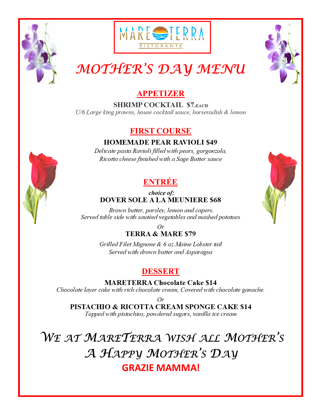 Join us on Mother's Day and treat your mom to a delicious meal!