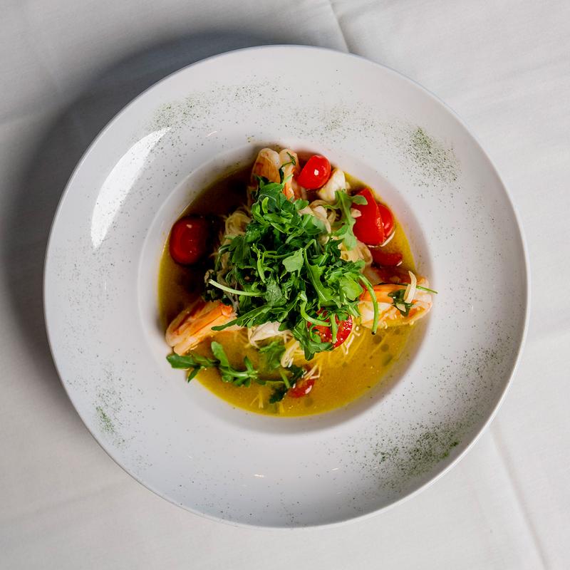 Capellini Con Granchio Gamberi, E Rucola